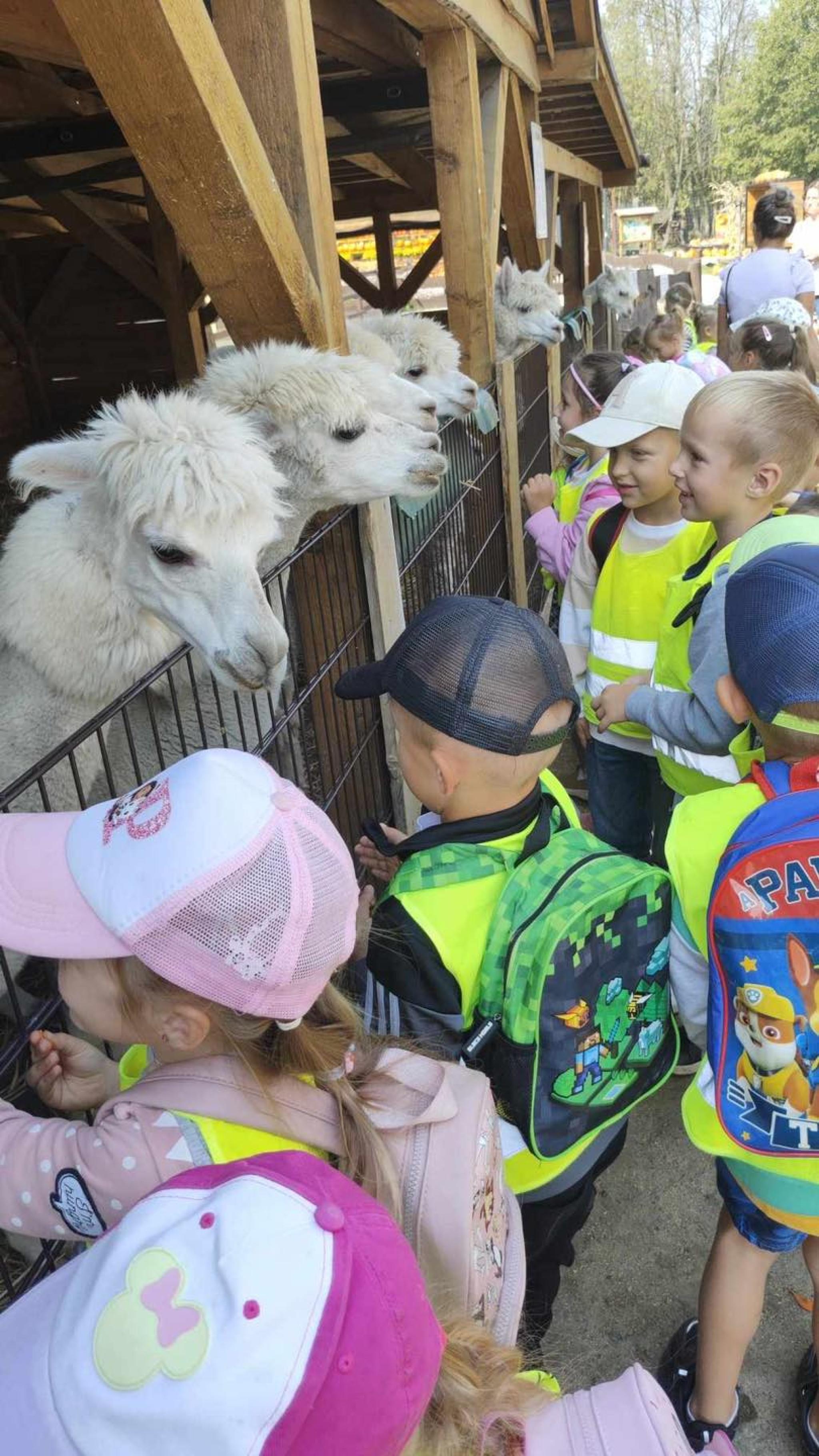 W dniu 17.09.2024r. dzieci z naszego przedszkola wybrały się na wycieczkę do Mini Zoo Dobronianka w Dobroniu. Celem wycieczki były: obserwacja i czerpanie pozytywnych wrażeń w kontakcie z przyrodą, zainteresowanie różnorodnością gatunków świata zwierząt oraz kształtowanie świadomości ekologicznej. Przedszkolaki miały możliwość poznać różne zwierzęta np. alpaki, kozy, konie, wielbłądy, osły, mary, króliki, pawie i wiele innych, a także karmić niektóre z ich marchewkami. Pobyt w zoo dostarczył najmłodszym wiele radości. To był wspaniały dzień.
