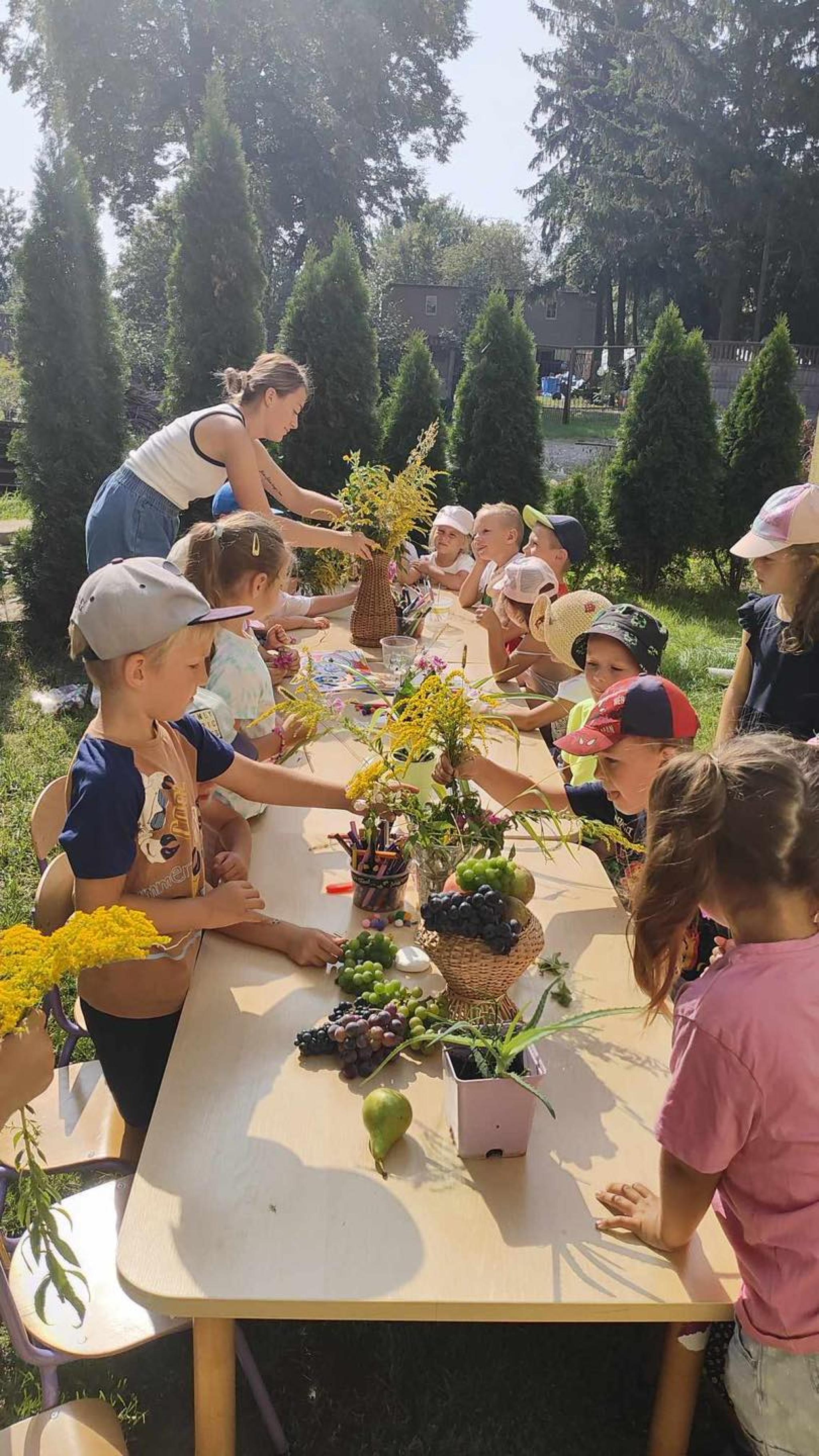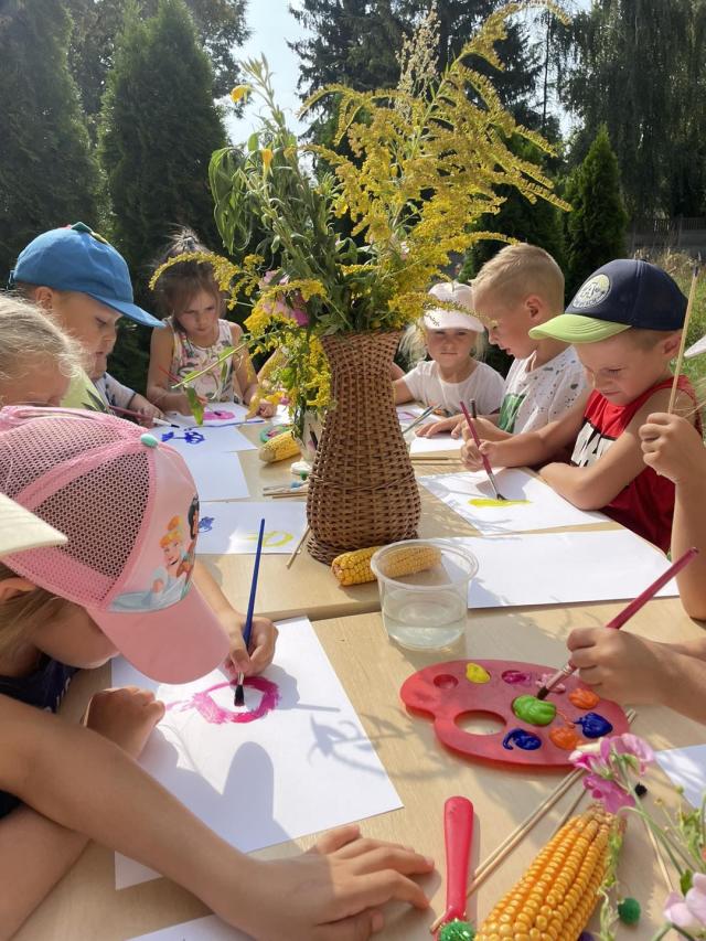 Korzystając z pięknej pogody dzieci z grupy #biedronki wyszły na teren przedszkola na zajęcia plastyczne. Malowanie wcześniej zebranych kwiatów i owoców okazało się świetną zabawą. Na świeżym powietrzu dzieci eksperymentowały z kolorami i wykazywały się niezwykłą inwencją twórczą. Zajęcia w plenerze dostarczyły wiele pozytywnych emocji