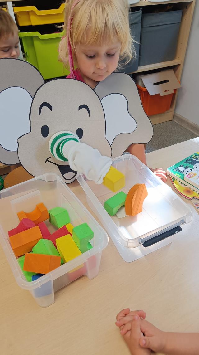 "Nazywam się Słoń, ważę kilka ton. A teraz prawdziwa bomba - mój nos to wielka trąba!" Zabawy manualne usprawniające koordynację wzrokowo-ruchową.