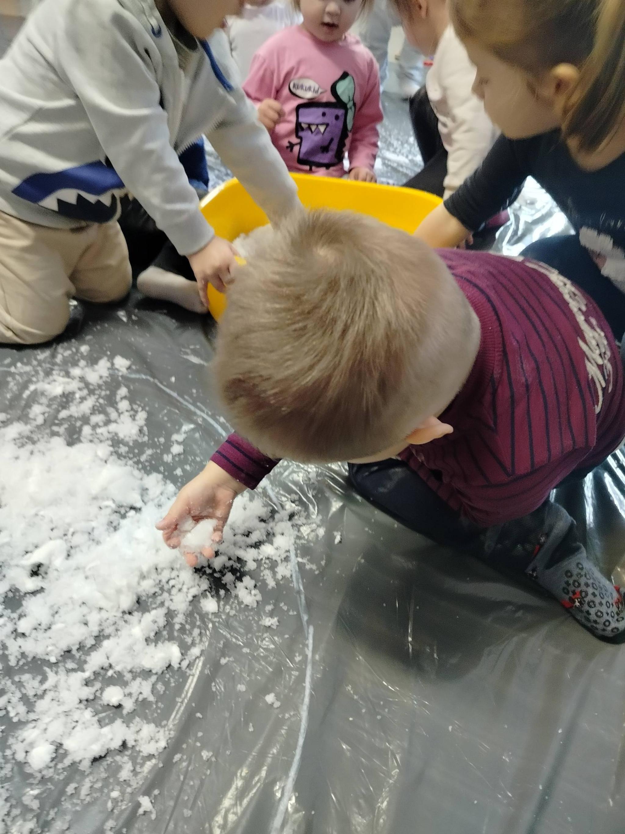 Zabawy z wykorzystaniem elementów sensoryki - sztuczny śnieg