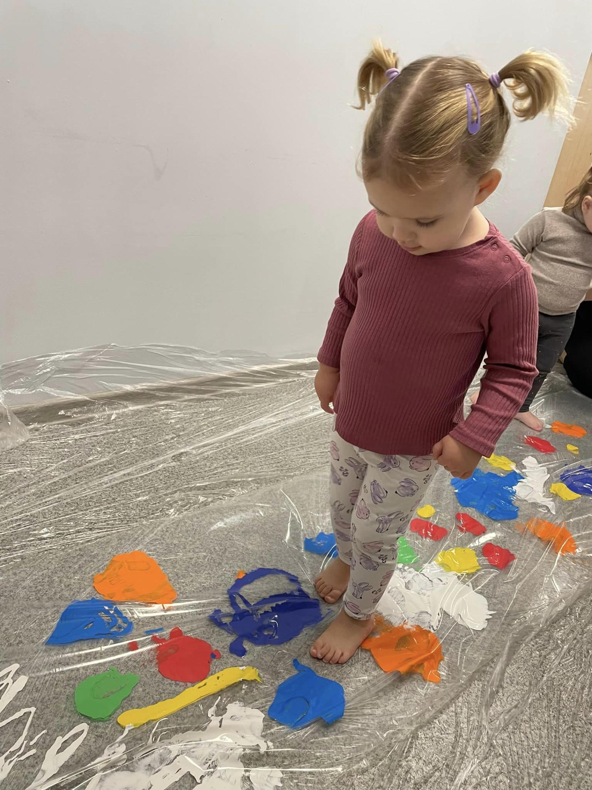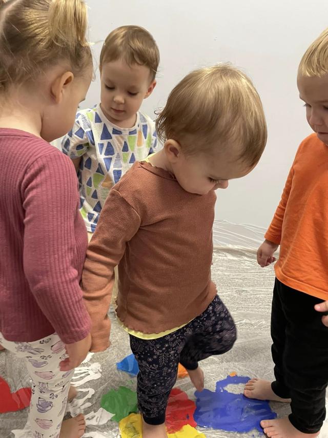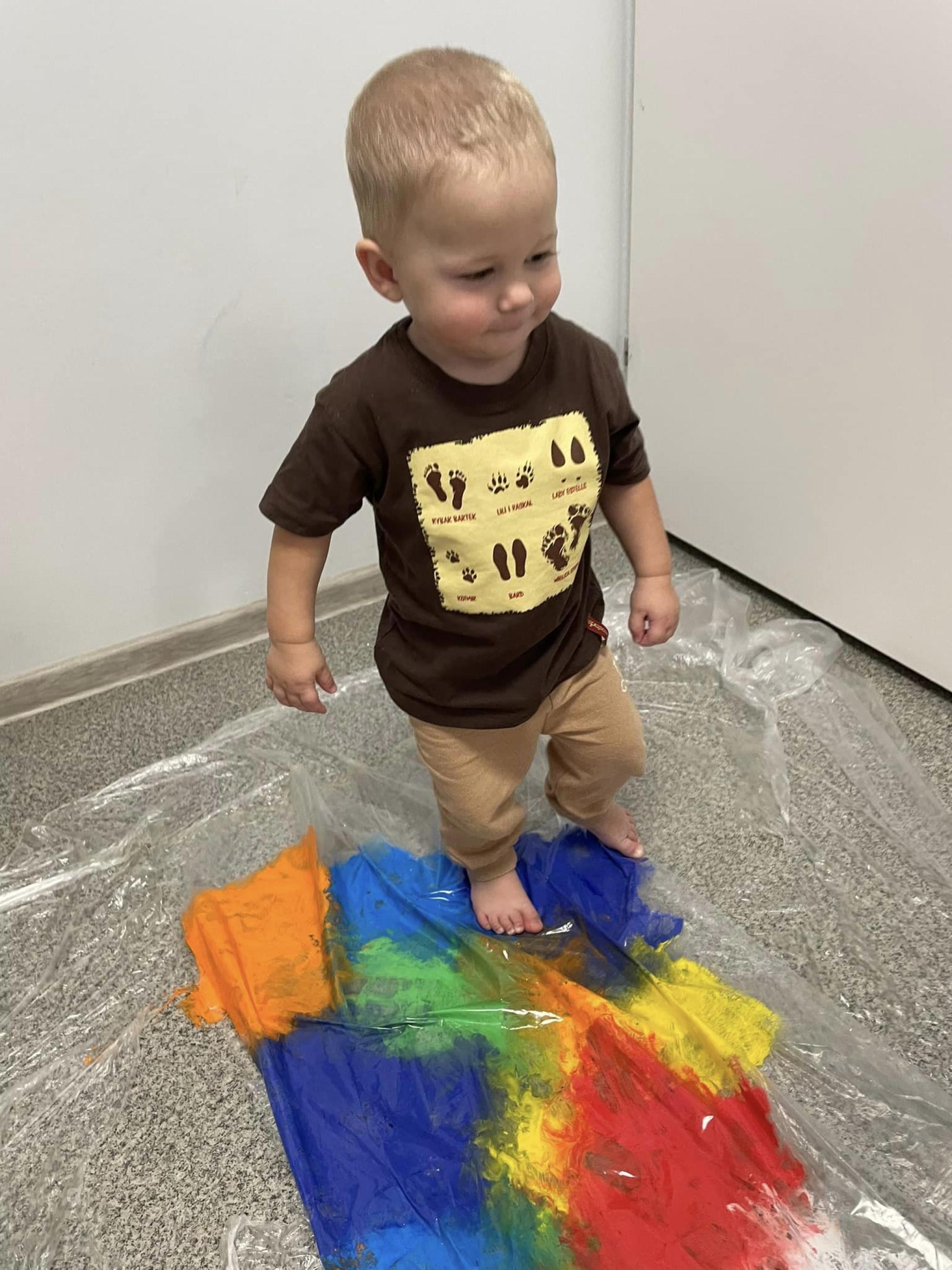 Dzieci miały okazję przyjrzeć się swoim stopom a podczas zabaw rozwijały zmysł równowagi, sprawność motoryczną i zmysł dotyku. Dzieci wykonały prace plastyczną swoimi stopami.