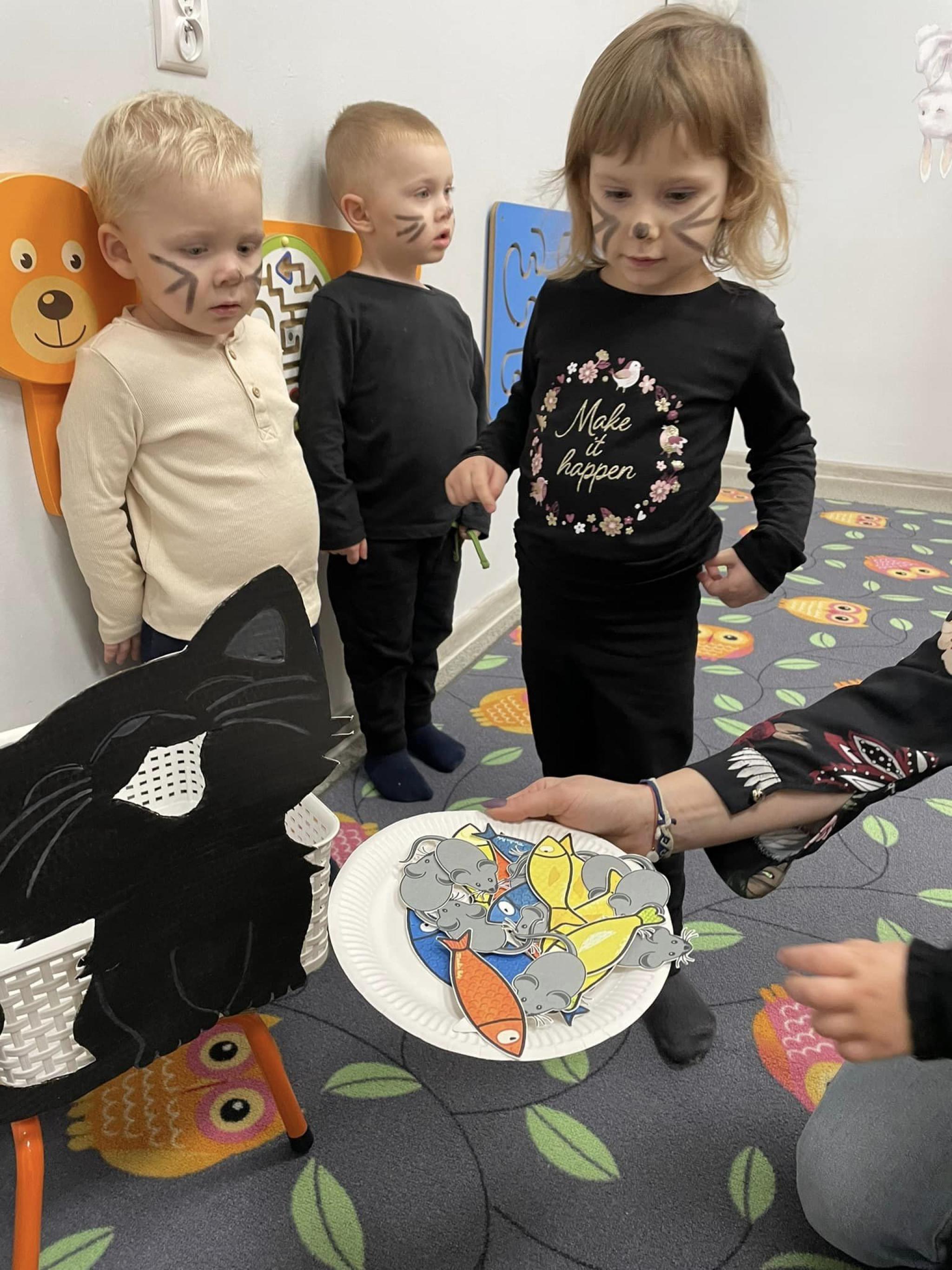 Żłobkowe sówki wcieliły się w rolę czarnych kotków