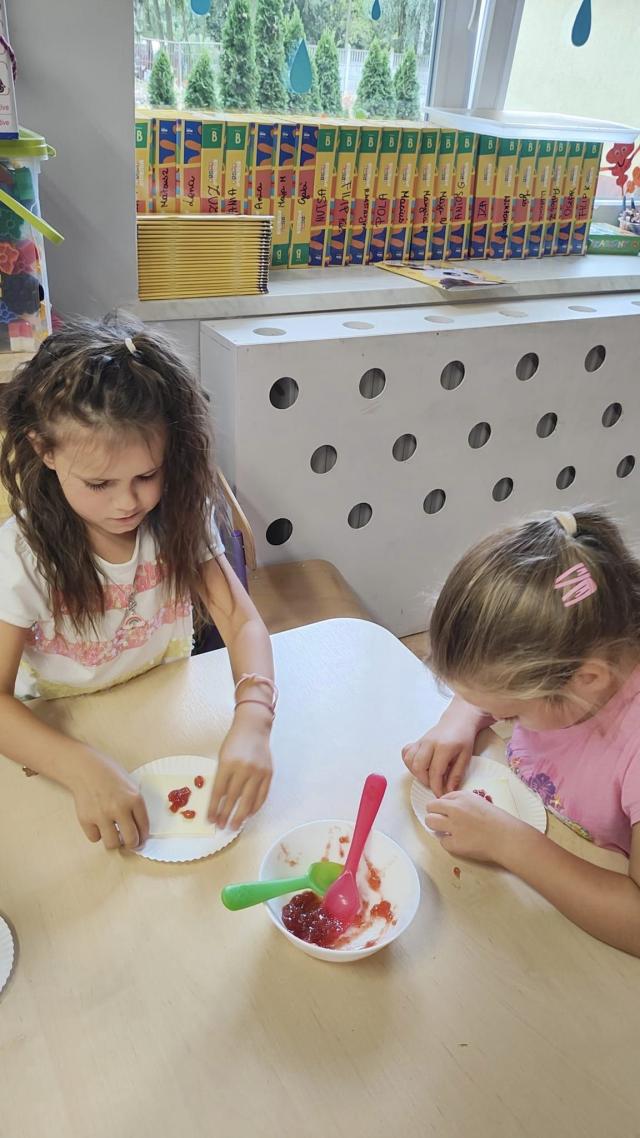 Biedroneczki 🐞 w ramach zajęć kulinarnych wykonały ciasteczka z dżemem truskawkowym 😊