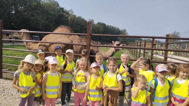W dniu 17.09.2024r. dzieci z naszego przedszkola wybrały się na wycieczkę do Mini Zoo Dobronianka w Dobroniu. Celem wycieczki były: obserwacja i czerpanie pozytywnych wrażeń w kontakcie z przyrodą, zainteresowanie różnorodnością gatunków świata zwierząt oraz kształtowanie świadomości ekologicznej. Przedszkolaki miały możliwość poznać różne zwierzęta np. alpaki, kozy, konie, wielbłądy, osły, mary, króliki, pawie i wiele innych, a także karmić niektóre z ich marchewkami. Pobyt w zoo dostarczył najmłodszym wiele radości. To był wspaniały dzień.