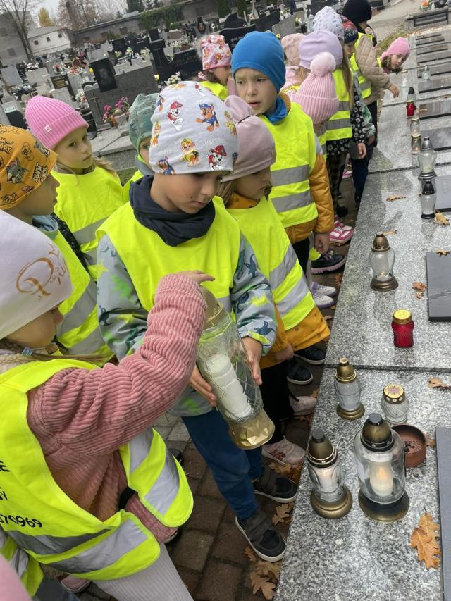 Okres przed świętem zmarłych, to odpowiedni moment na wspomnienie tych, którzy odeszli, czas na rozmowę dotyczącą szacunku dla nich. Taki też właśnie cel przyświecał naszej wycieczce. Podczas pobytu na cmentarzu przedszkolaki mogły w ciszy i zadumie posłuchać opowieści na temat przeszłości naszej ojczyzny, zapalić znicze na zbiorowej Mogile Poległych Żołnierzy w II Wojnie Światowej, którzy walczyli w obronie naszej ojczyzny. Wychowankowie dowiedzieli się także, jak należy zachowywać się na cmentarzu, by nie zakłócać spokoju zmarłych i osób odwiedzających to miejsce. Spacer alejkami cmentarza był dla dzieci ogromnym przeżyciem, szły skupione i bardzo zaciekawione. To była jedna z ważniejszych lekcji wychowania rodzinnego, obywatelskiego i patriotycznego, która z pewnością pozostanie w pamięci dzieci. #biedronki 🐞❤️🐞🐞