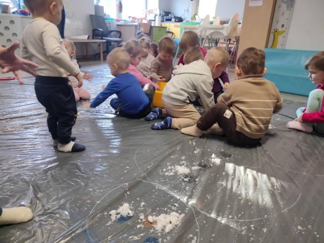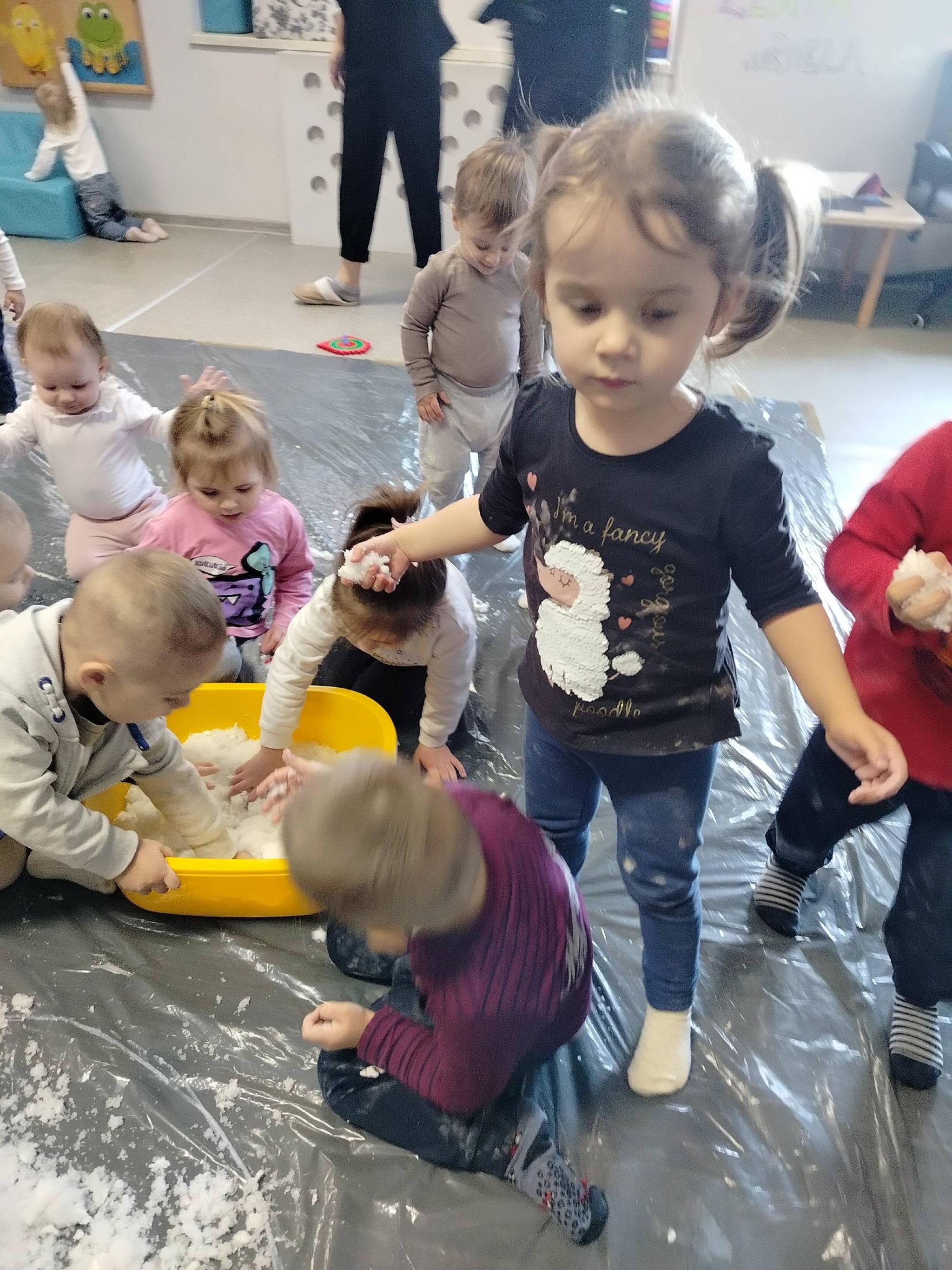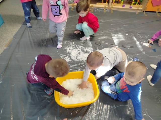 Zabawy z wykorzystaniem elementów sensoryki - sztuczny śnieg
