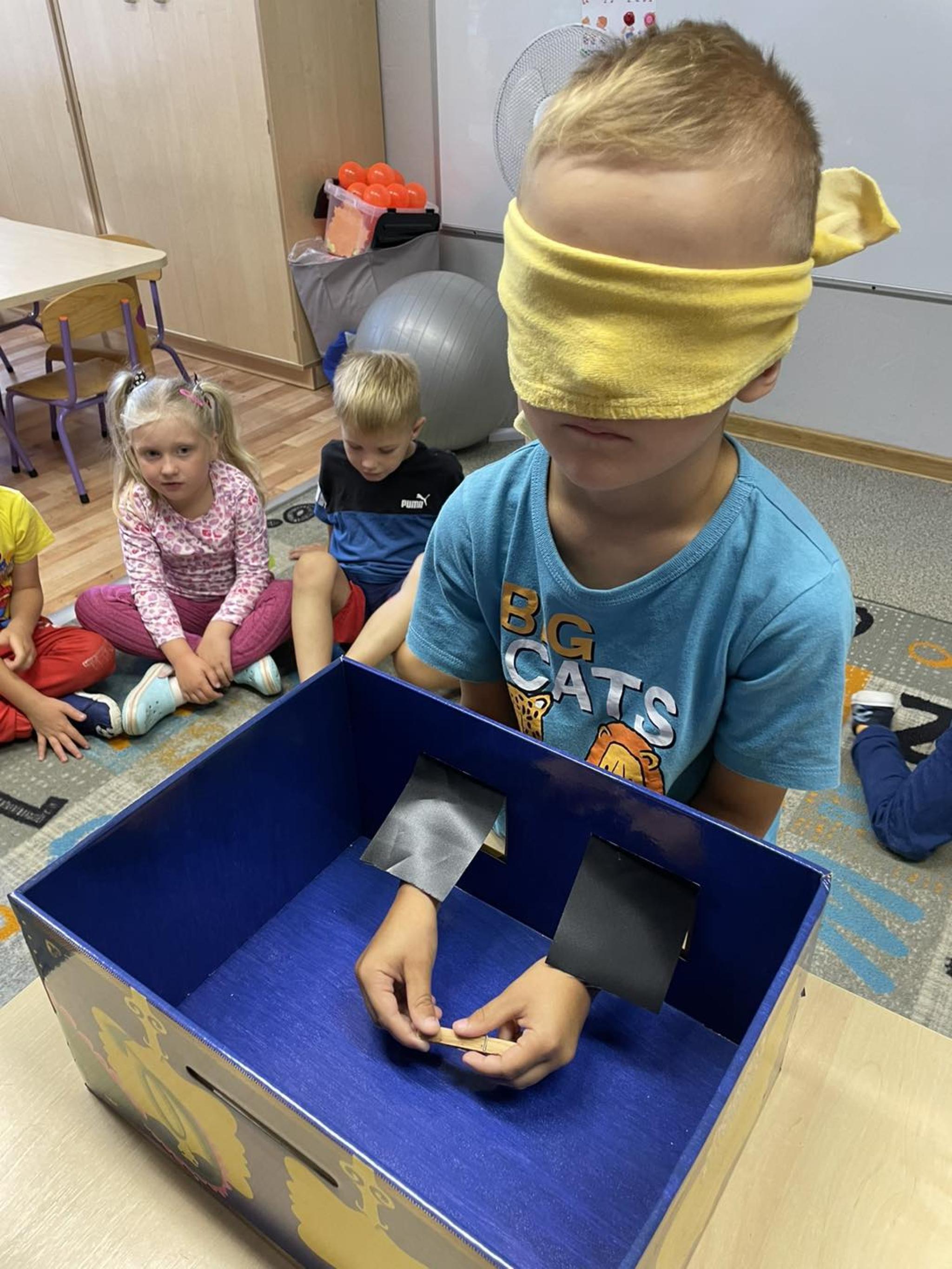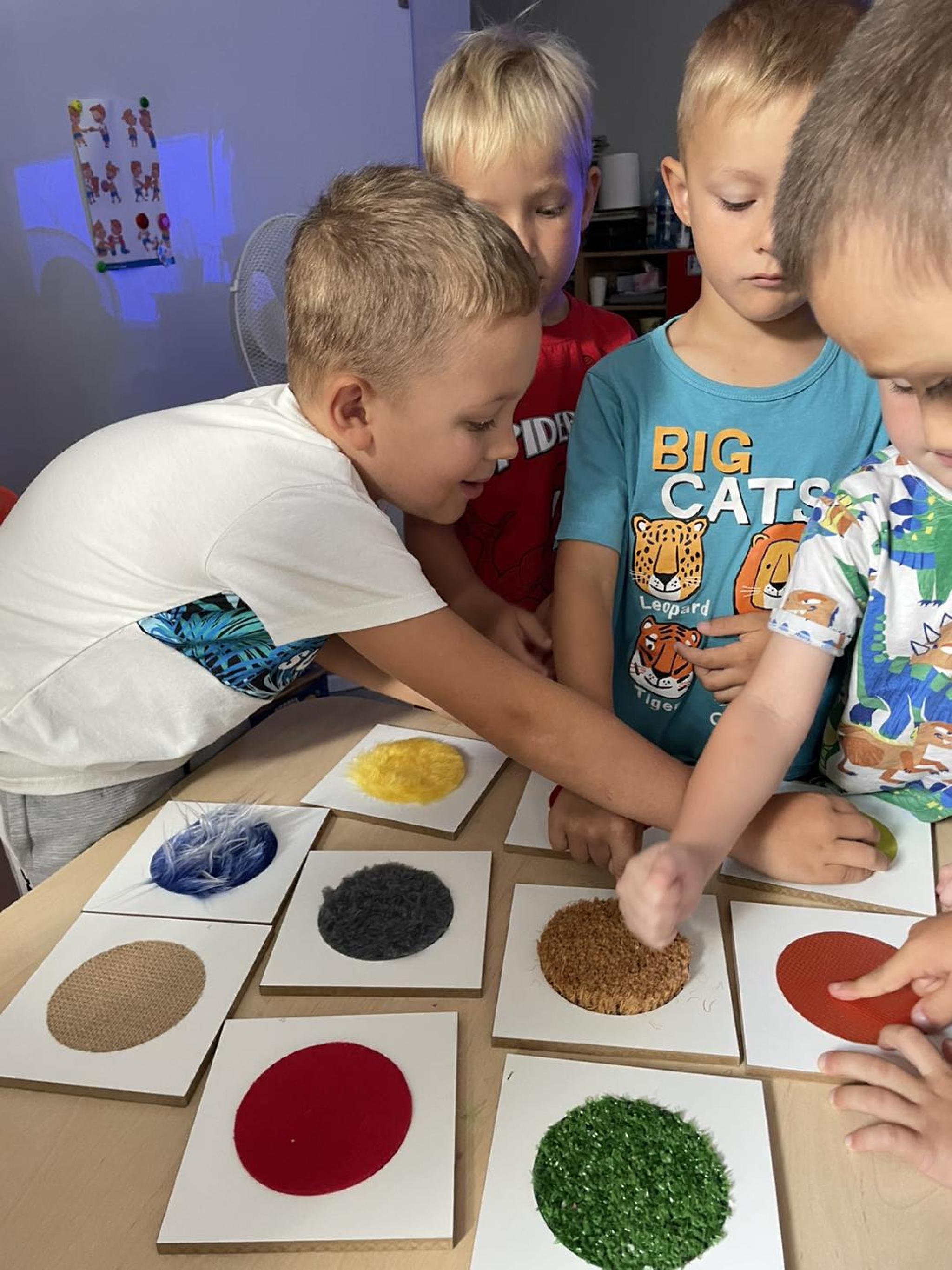 Przedszkolaki z grupy #biedronki 🐞 rozpoznawały różne przedmioty za pomocą dłoni. Dzięki temu rozwijały zmysł dotyku oraz umiejętność opisywania przedmiotów. Dzieci miały również możliwość dotykać panele sensoryczne o zmiennej fakturze.